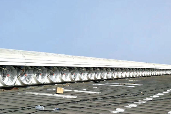 紡織廠車間機(jī)器多,工作時(shí)散發(fā)出大量的熱量,引發(fā)紡織廠車間高溫、悶熱,而且飛毛過(guò)多,空氣污濁,嚴(yán)重影響員工的身體健康。因此,紡織廠采用了本公司研發(fā)制造的紡織車間降溫設(shè)備(負(fù)壓風(fēng)機(jī)和降溫水簾)來(lái)改善車間現(xiàn)存的高溫悶熱、飛毛亂飛的情況,讓空氣迅速對(duì)流交換,使新鮮的空氣源源不斷的流入室內(nèi),從而為車間創(chuàng)造一個(gè)涼…